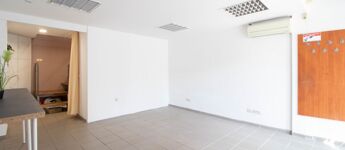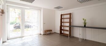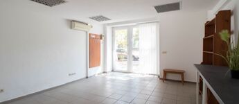A tágas ajtóval és nagy ablakrésszel rendelkező portál a sétálóknak nem csak betekintést enged az irodába, hanem lehetőséget biztosít átadó ablakként is funkcionálni, így sokféle tevékenységre is kiválóan alkalmas az ingatlan.