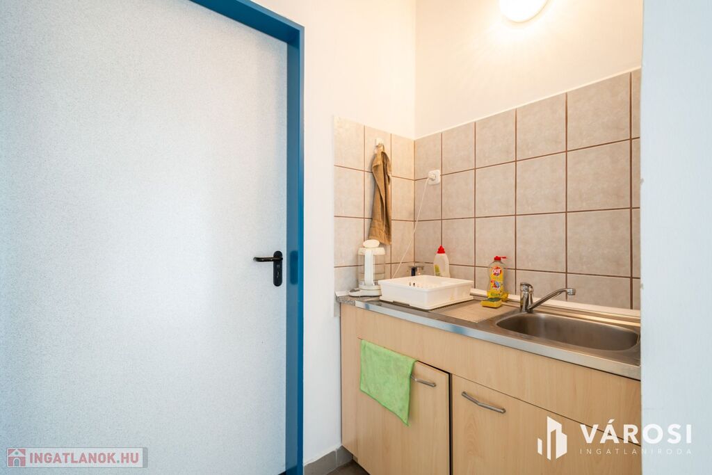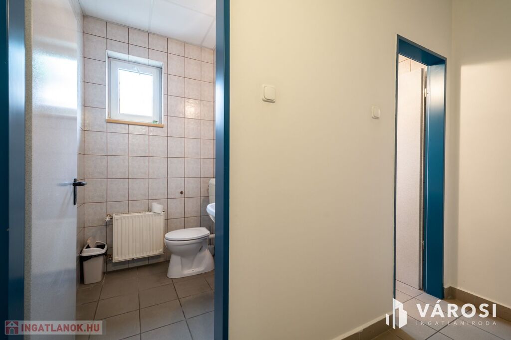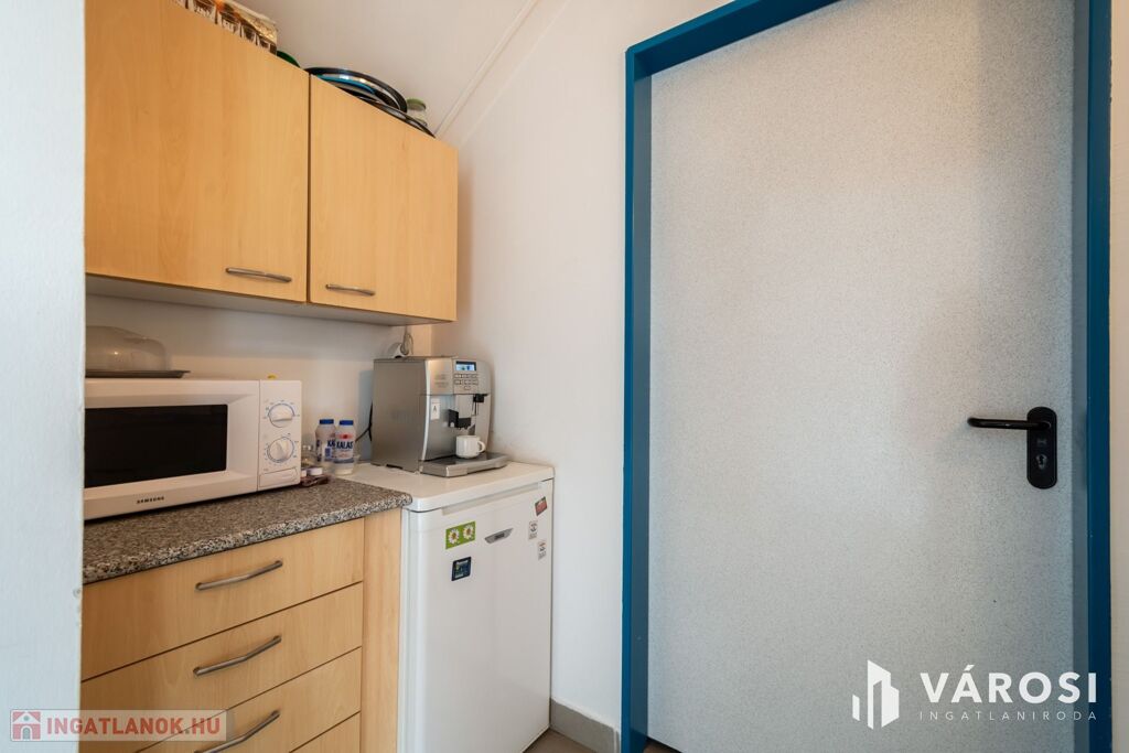 Ezen kívül saját konyhával és 2 db WC-vel is rendelkezik, összesen 98 m2. Az iroda 8-12 fő részére ideális méretű.