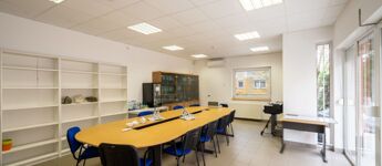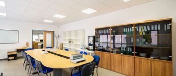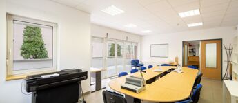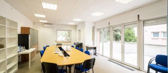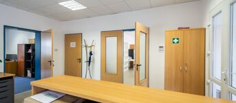 Az irodaterület 3 részből áll: 2 irodából és egy nagyméretű tárgyalóból, ami nagyon világos.