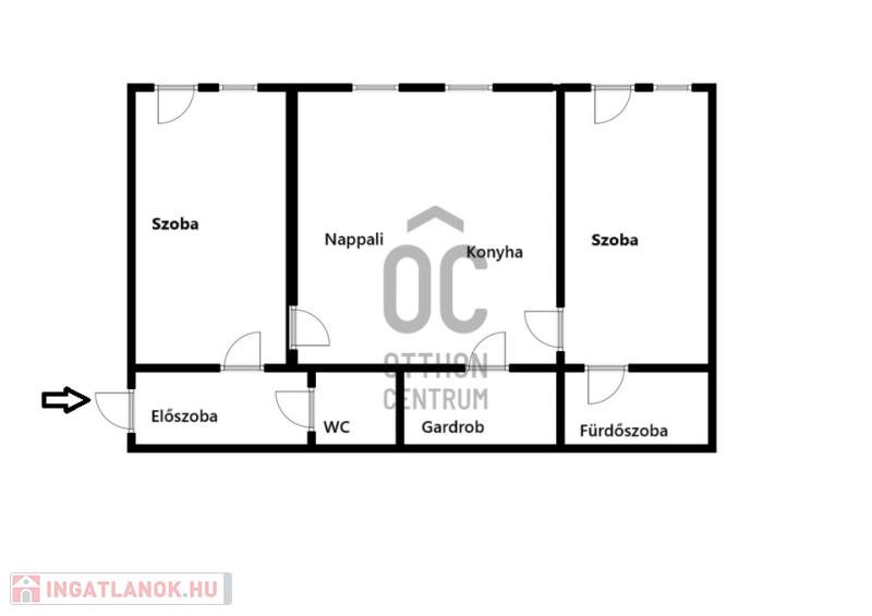 - amerikai konyhás nappali, 2 szoba, gardrob, közlekedő, fürdőszoba és külön WC