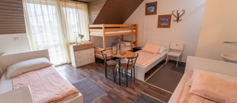 Az emeleti szint vendégházként üzemel. 6 db lakóegység található benne. Az egész épületben 9 db szoba található.