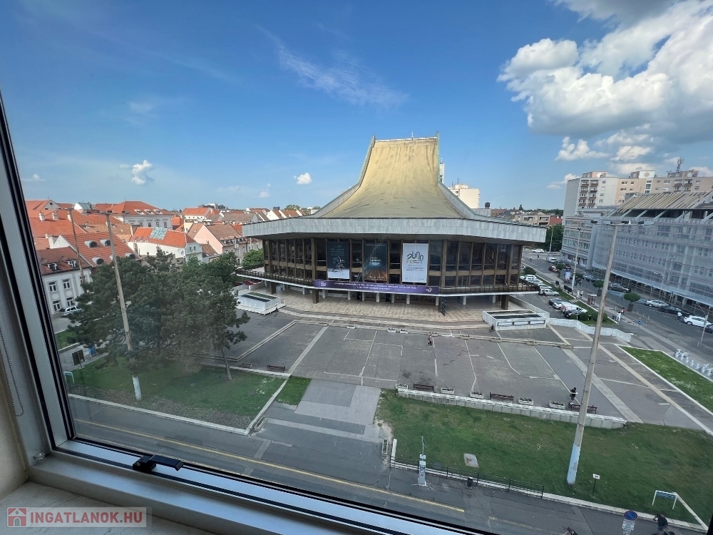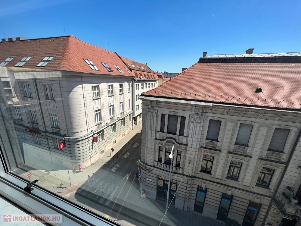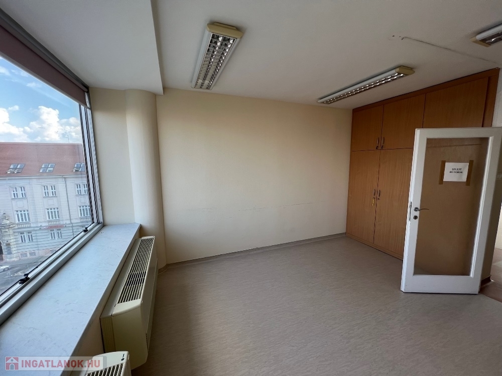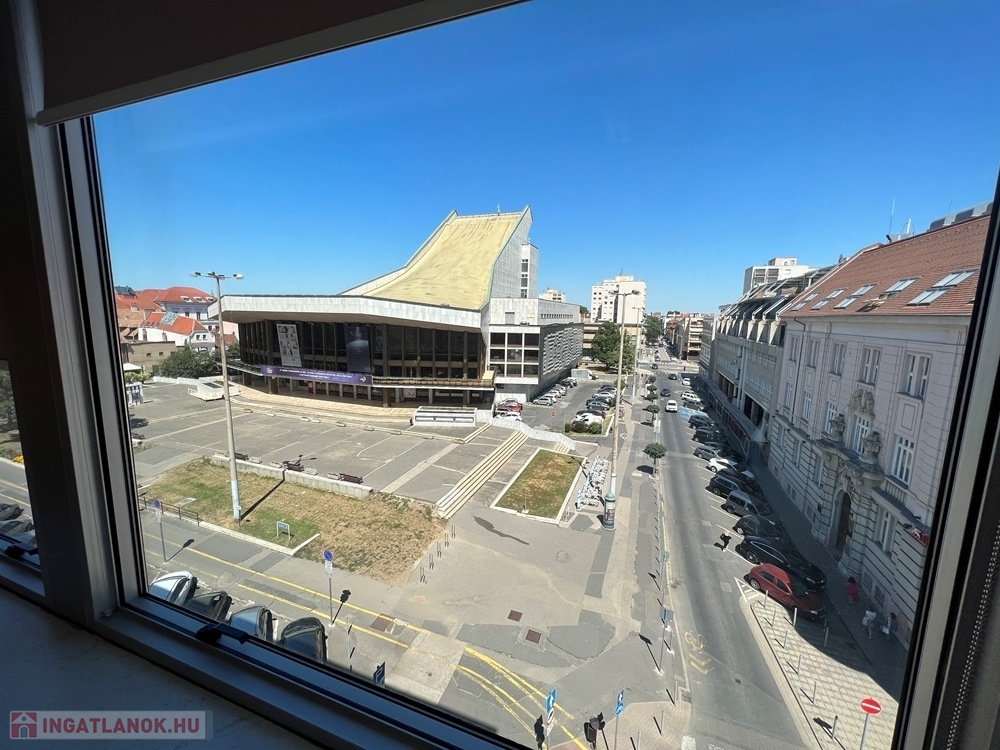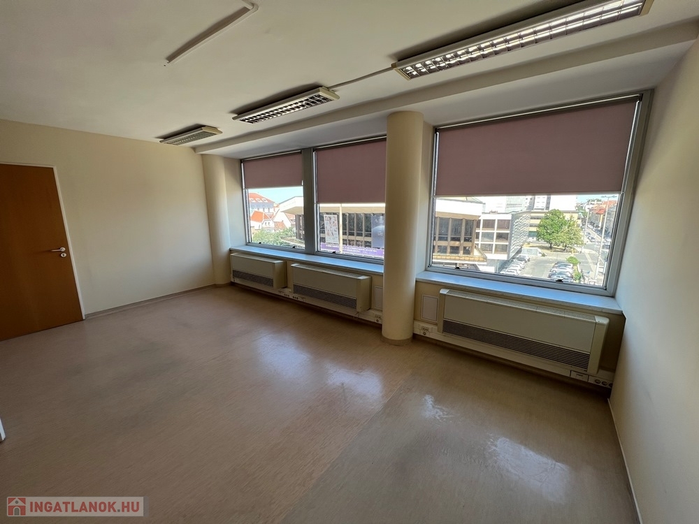 Győr-Belvárosának szívében, Baross úttól, Széchenyi tértől pár másodperces sétatávolságra, rendezett, tiszta irodaház 4. és 5. emeletén, nagy üvegfelülettel rendelkező, 18 m2-es bútorozatlan iroda, NEMZETI SZÍNHÁZRA való kilátással, közös tárgyaló használatának lehetőségével kiadó.