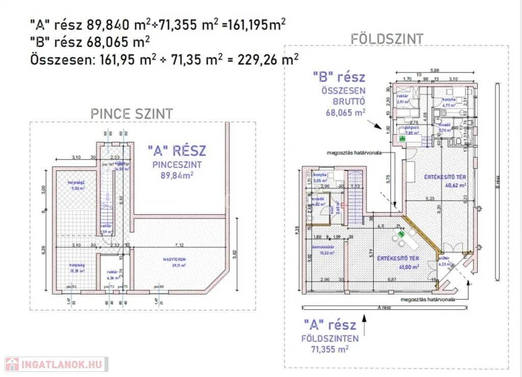 Az alaprajzon az "A" terület érintett, megosztási szerződéssel.