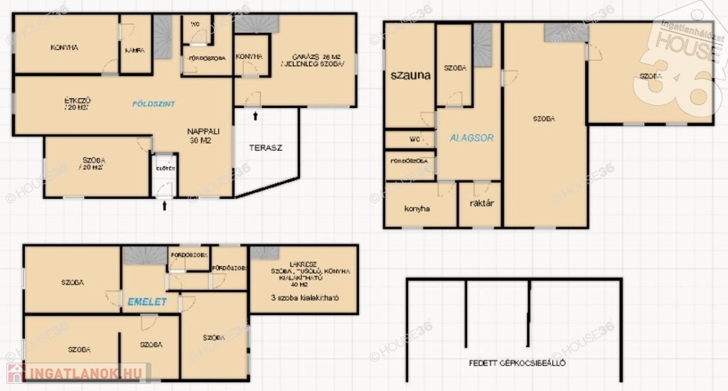 161 m2-es földszint, brutto 90 m2 emelet, 140 m2 alagsor