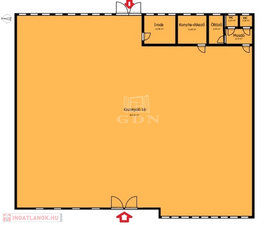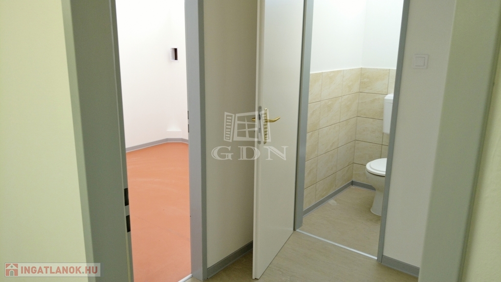 -a belső térben egy iroda, irattár, teakonyha, öltöző, 2 db mosdó-wc található
