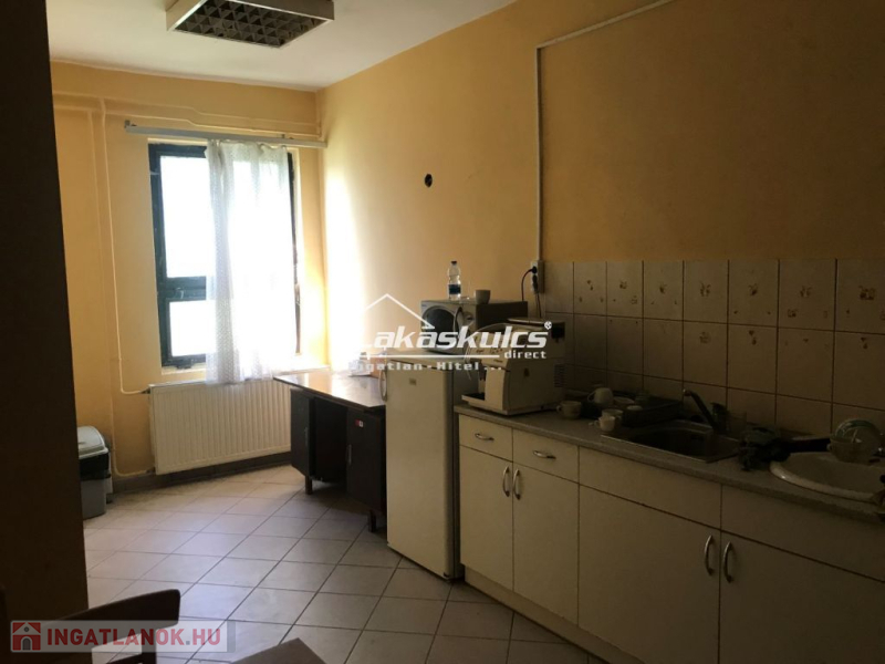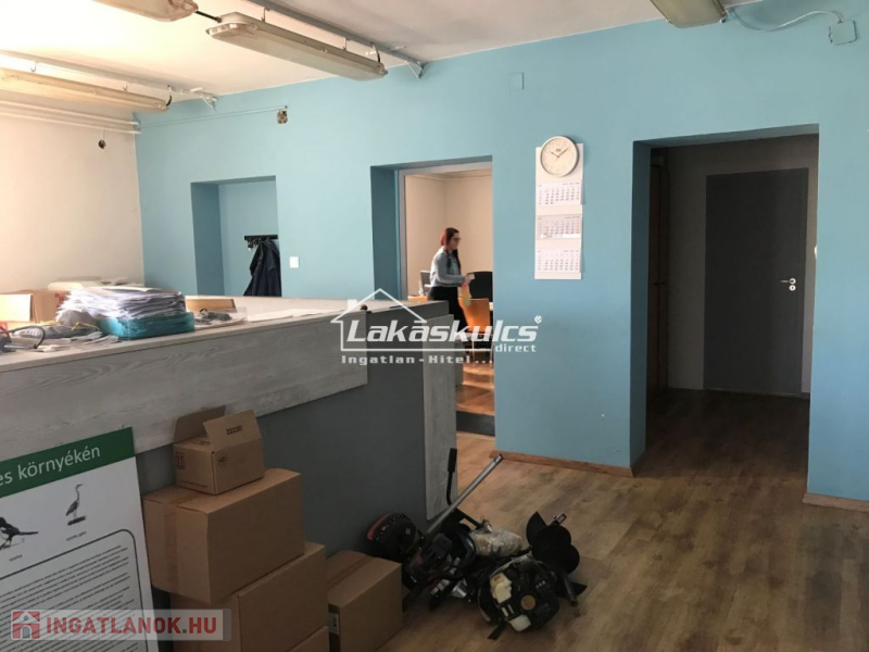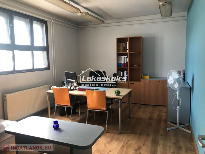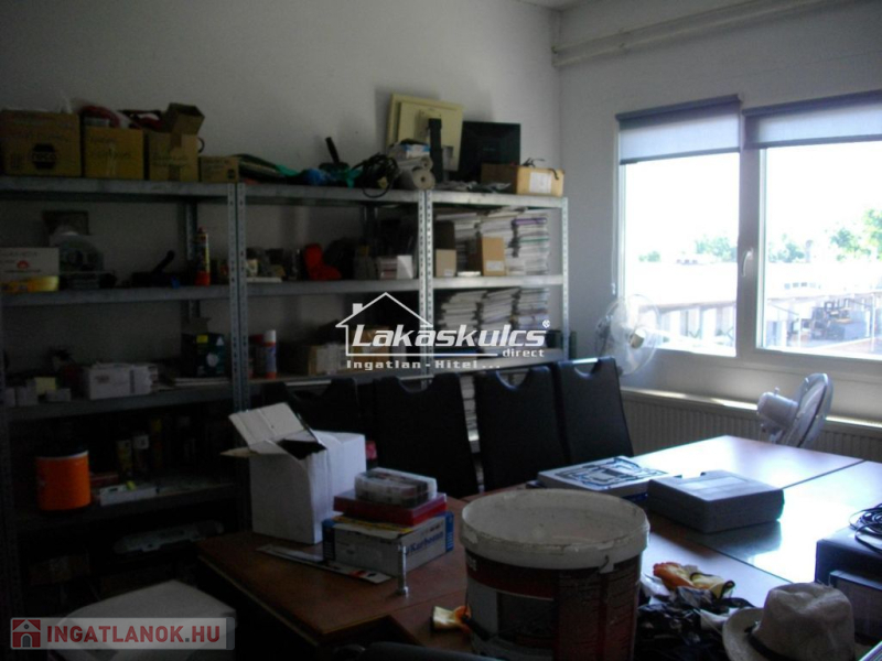 Külön 280 m2-es épületben (földszint+emelet) vannak az irodák és a szociális helyiségek. Az épületek között és körül kamionnal is járható 4.500 m2-es betonozott terület van.