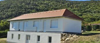 - az alapoktól felújított épület, fém vázszerkezettel, Porotherm tégla kitöltéssel, 10 cm hőszigeteléssel, cserépfedéssel
