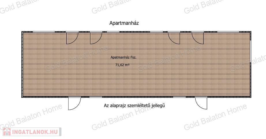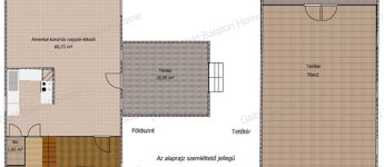 Apartmanház: földszint ~70 m² (két apartman), szuterén ~80 m²