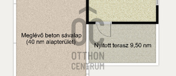 Az épületben egy 14 nm-es helyiség van, nagyon hangulatos, látszógerendás födémmel. előtte egy betonozott, 9,50 nm-es terasz, illetve egy esetleges bővítéshez már egy 40 nm-es alapterülethez a sávalap rendelkezésre áll.